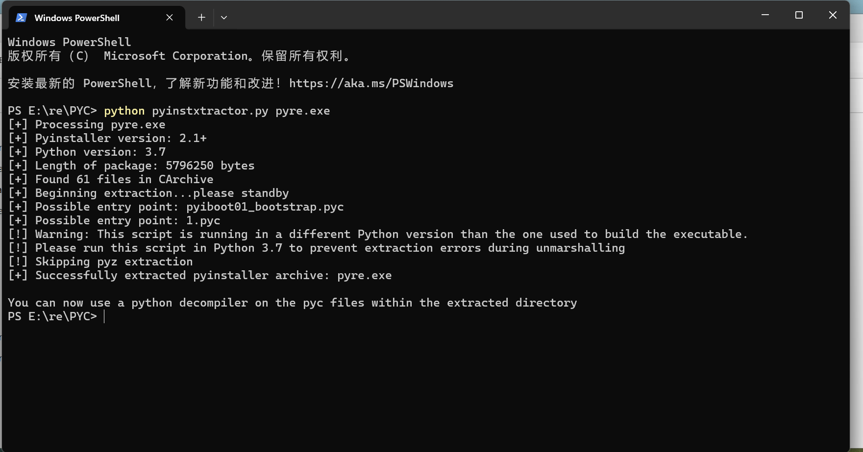 python pyinstxtractor.py 文件名.exe 再回车一下,