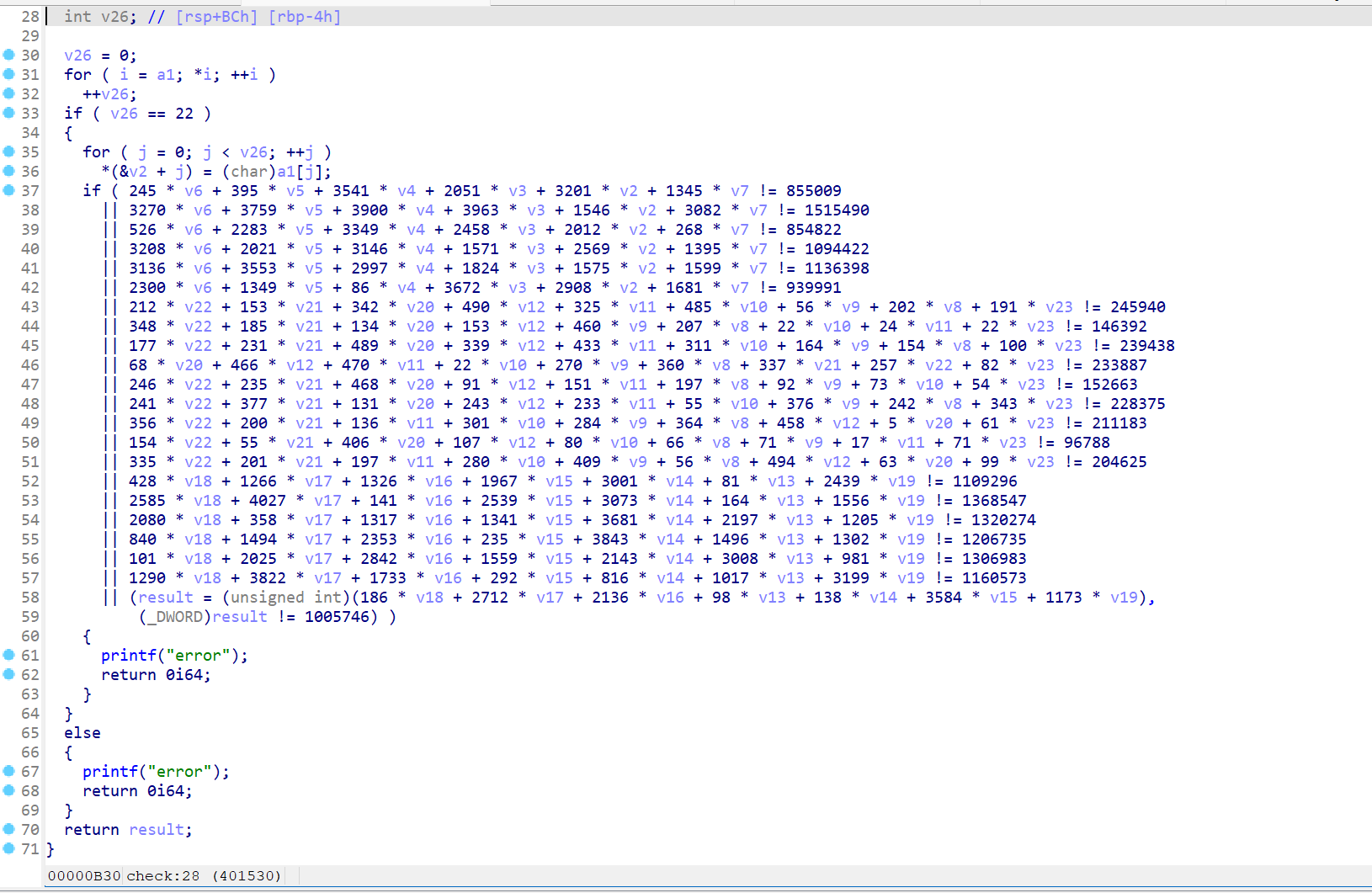 进行分析,使用z3求解器来求出满足所有方程的解,就知道code的值,再进行异或就好