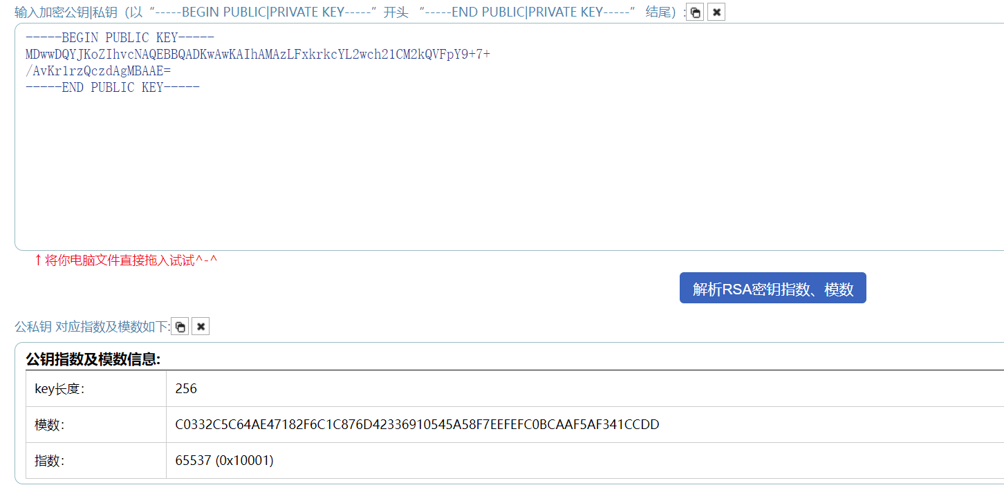 使用在线网站进行公钥解析:http://tool.chacuo.net/cryptrsakeyparse