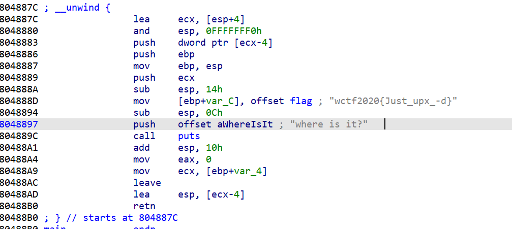 拿到后先查壳,发现了upx壳,脱完壳后用IDA32位打开,这道题开门见山呐