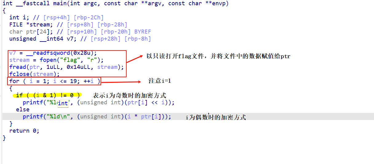 - 计算 v9 = i ^ buf(将当前循环索引i与读取的字符buf异或)。