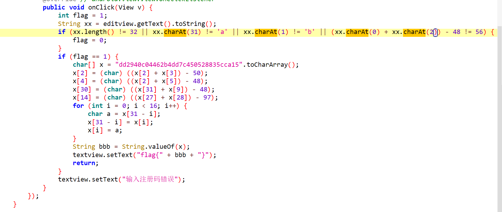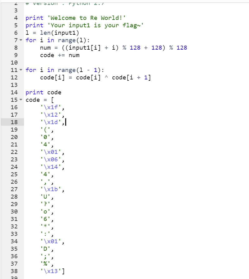 需要注意的是,两个if条件,第一个if是说如果b[i2]是AZ或az的字符,y[i2] = b[i2]+16,第二个if条件是说,如果y[i2]符合条件,y[i2]=chr(y[i2]-26),两个if条件后得到的才是flag,else也是flag 。由于str中没有AZ的字符,第一个if条件AZ的可以不写