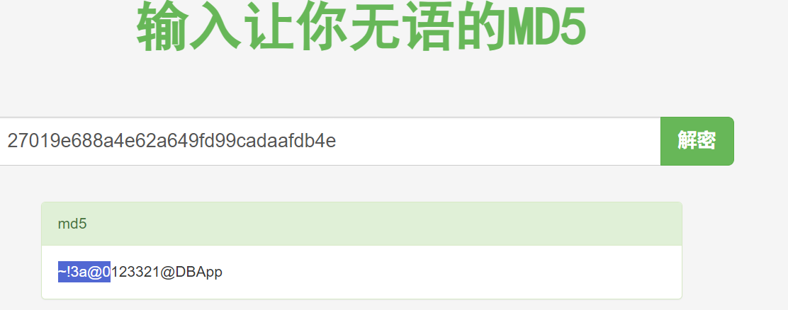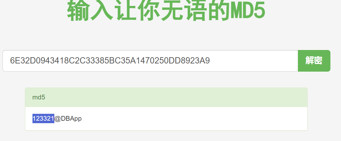 查看加密函数发现是哈希函数,使用在线网站解密 https://www.somd5.com/