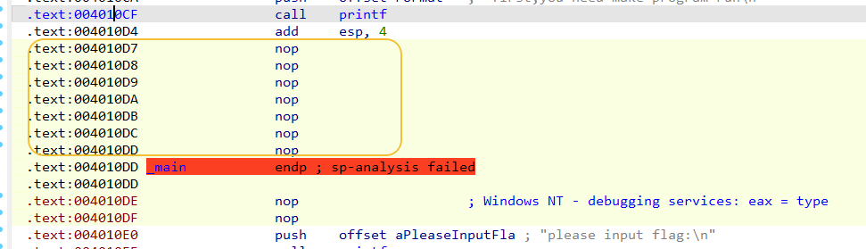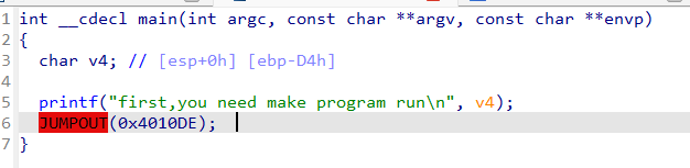 简单来说就是:jmp eax 是 间接跳转,IDA 默认无法静态分析出 eax 的值是 loc_4010DE,所以 IDA 不会自动跟进控制流,loc_4010DE后面的逻辑并没有被反编译出来。