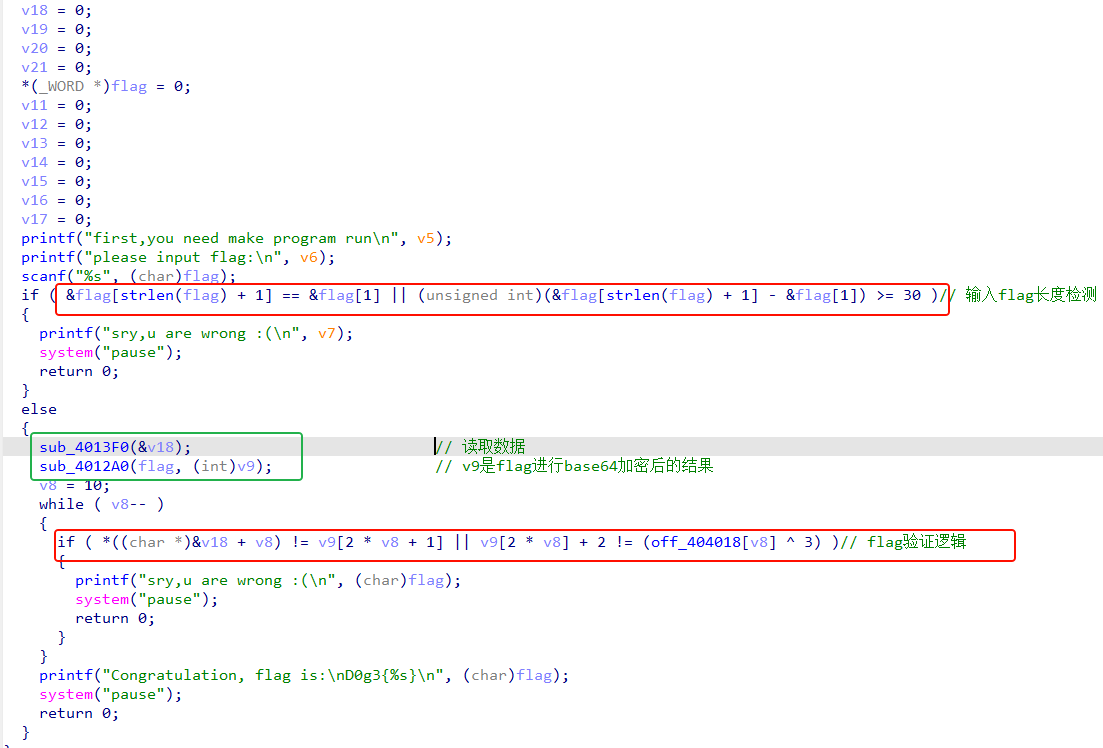 sub_4012A0(flag, (int)v9)是得到flag进行base64加密后的值。