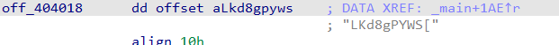 | 1 | if ( *((char *)&v18 + v8) != v9[2 * v8 + 1] ||v9[2 * v8] + 2 != (off_404018[v8] ^ 3) ) |