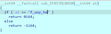 1 2 3 4 5 6 7 8 9 10 11 12 13 14 15 16 17 buffer='hahahaha_do_you_find_me?'  flag =''  v2=[0x0E , 0x0D , 0x09 , 0x06 , 0x13  ,0x05  ,0x58  ,0x56  ,0x3E  ,0x06  ,0x0C  ,0x3C  ,0x1F  ,0x57  ,0x14  ,0x6B  ,0x57  ,0x59  ,0x0D  ]  print (len (v2))  for  i in  range (len (v2)):    flag+= chr (v2[i]^ord (buffer[i])) print (flag)v3 ='%tp&:'  a=ord (':' )^ord ('}' ) for  i in  range (len (v3)):    flag+=chr (ord (v3[i])^a) print (flag)