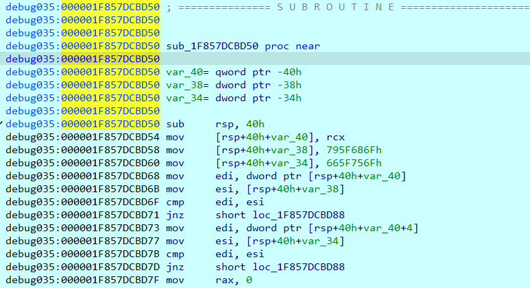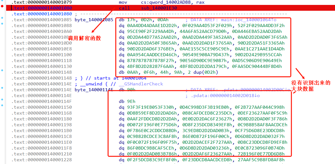 我们在断点位置按F7进行单步步入看看汇编,发现与静态分析的有所不同,这里有很多数据都没有被正确识别出来