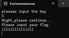 1 2 3 4 5 6 7 8 9 10 11 12 13 14 15 16 17 18 19 20 21 22 23 24 25 26 27 28 29 30 31 32 33 34 35 def  rc4_decrypt (ciphertext, key ):         S = list (range (256 ))     j = 0      for  i in  range (256 ):         j = (j + S[i] + ord (key[i % len (key)])) % 256          S[i], S[j] = S[j], S[i]          i = j = 0      keystream = []     for  _ in  range (len (ciphertext)):         i = (i + 1 ) % 256          j = (j + S[i]) % 256          S[i], S[j] = S[j], S[i]         K = S[(S[i] + S[j]) % 256 ]         keystream.append(K)          return  bytes ([c ^ k for  c, k in  zip (ciphertext, keystream)]) if  __name__ == "__main__" :         v16 = [         15 , 148 , 174 , 242 , 192 , 87 , 194 , 224 , 154 , 69 ,         55 , 80 , 245 , 160 , 94 , 203 , 44 , 22 , 40 , 41 ,         254 , 255 , 51 , 70 , 14 , 87 , 130 , 34 , 82 , 38 ,         43 , 110 , 228 , 130 , 36      ]     key = "you_are_master"      decrypted = rc4_decrypt(v16, key)     print ("Recovered flag:" )     print (decrypted.decode())