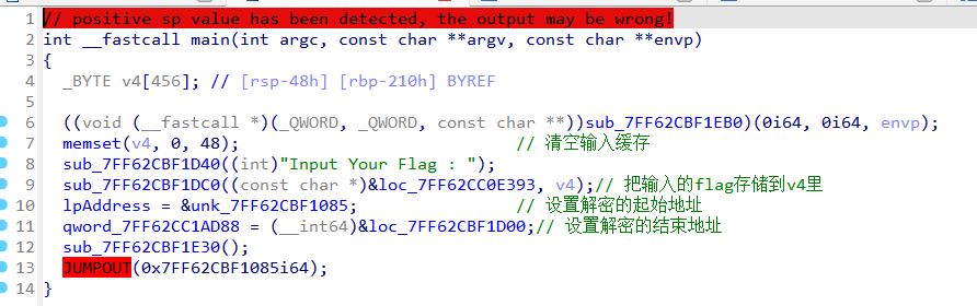 例题 1.NSS-[网鼎杯 2020 青龙组]jocker 使用IDA打开后,我们进行分析,发现整个函数头有positive sp value has been detected, the output may be wrong!
