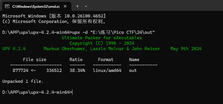 题目附件是一个可执行的ELF64文件,将它先放入DIE里查壳,发现有UPX壳,首先要进行脱壳。
