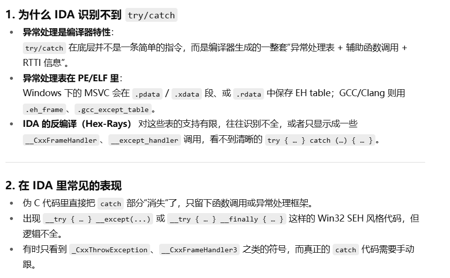 3.[LitCTF 2023]程序和人有一个能跑就行了 由于IDA识别C++的 try/catch 结构时经常不完整,这就给了出题人隐藏真正的密文或key的机会。