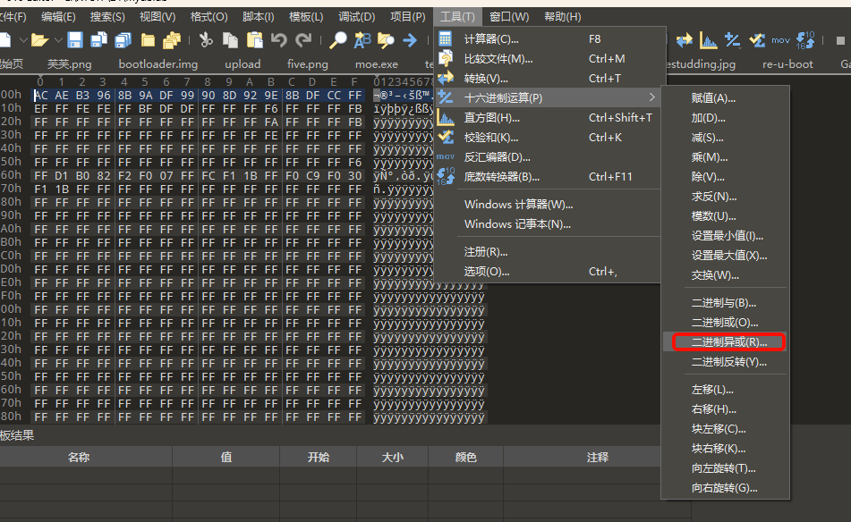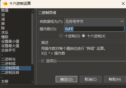 将所有16进制数都异或0xFF。可以直接使用010里面的工具进行异或。