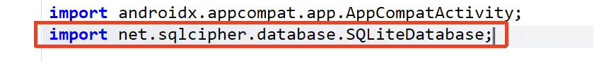 在包和导包的部分,能看到 import net.sqlcipher.database.SQLiteDatabase;